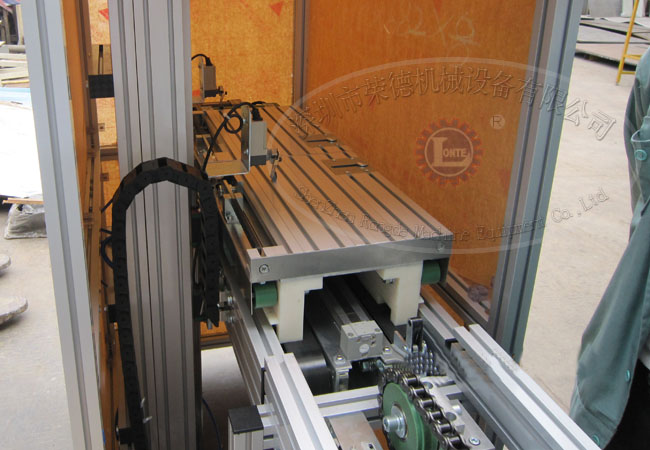 高鐵門自動裝配流水線技術優(yōu)勢:針對高鐵門驅動部分,尺寸長短不一且很沉重,不好定位,設計一套能自動流動工裝小車,小車采用一組帶手動離合驅動小車,一組被動小車,且產品放到主驅動小車,通過一個升降壓板壓緊產品的底板(可適應2-6mm的底板),另一組被動小車依產品長度調到合適位置,由升降壓板壓緊定位好進行產品組裝,組裝一部分后,由輸送帶送至下一站,進行下一道工藝組裝,一共進行9道工序組裝后,產品取下,工裝小車由提升機送至下層返回輸送帶,從另一頭起點提升循環(huán)使用。