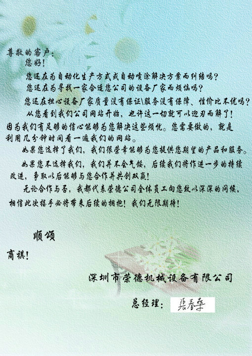 無(wú)論合作與否,我都代表榮德公司全體員工向您致以深深的問(wèn)候,相信此次握手必將帶來(lái)后續(xù)的擁抱!我們無(wú)限期待!