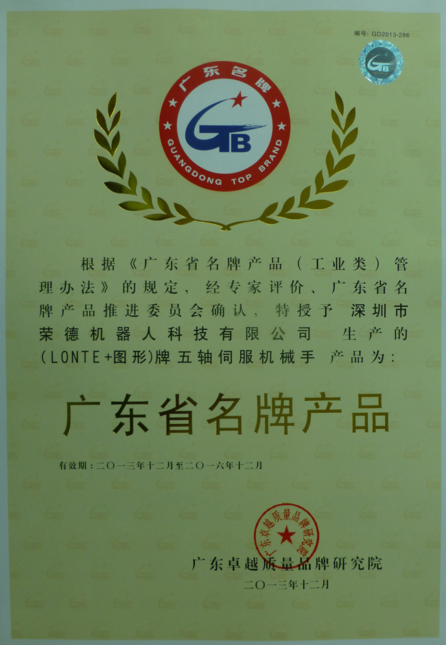 廣東省名牌產(chǎn)品申報可以說是相當嚴格,體現(xiàn)了該榮譽的嚴肅性、公正性。這也充分證明了深圳市榮德機器人科技有限公司的綜合實力以及客戶對榮德公司的滿意程度。