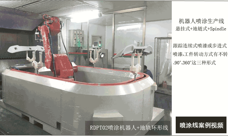 機器人是6軸自動涂裝機器人,被廣范應用到木制品,金屬件,塑料件等領域的噴涂噴工作,機器人噴涂線生產節(jié)拍允許最大鏈速3米/分鐘,機器人噴外表面和人工噴內表面相結合實現(xiàn)工件全覆蓋噴涂。噴涂漆料使用單組份溶劑型涂料,噴槍用的是自動空氣靜電噴槍。