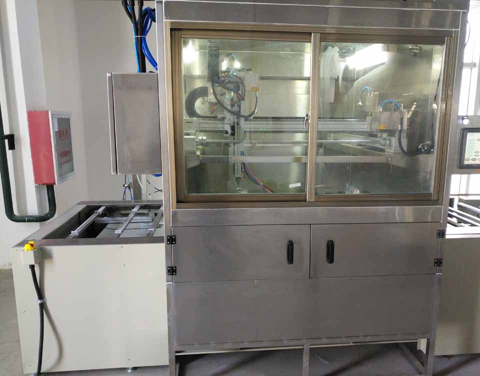 自動噴漆柜類型為水簾式噴漆柜,噴涂窗口尺寸:2000寬×2500深×1900高。,水箱深600,采用2mm厚SUS304不銹鋼制作,鋪格柵,防止零件掉入水中。配可升降手動旋轉(zhuǎn)臺,上鋪橡膠板,直徑Φ600,承重50kg以上。噴漆柜頂部和側(cè)面安裝防爆燈,光照度要求不低于650lux。噴漆柜內(nèi)壁采用1.5mm厚鍍鋅鋼板制作,平滑不積塵,利于清理,壁板之間在組裝時應(yīng)涂密封膠,立柱用3.0mm厚的鋼板制作,并用鍍鋅型材制成,淌水板及其他與水接觸部分均采用SUS304不銹鋼板制作,淌水板上部設(shè)溢流槽。